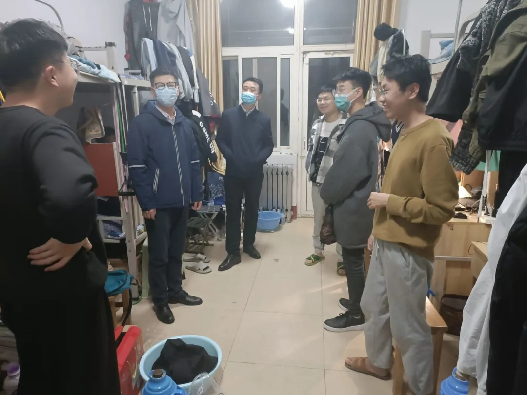 走访中,老师详细查看了同学们的宿舍状况,用水用电、消防安全等;询问了大家考研、就业状况,并就大学学习、考研复试、调剂以及就业问题与同学们深入讨论。刘伟指出,宿舍是大家共同的家,也是赋予大家安全感的地方,每个人都有责任去爱护它、保护它。良好的宿舍生活环境使人心情愉悦,有利于在校大学生的生活及心理健康。他鼓励大家要积极主动,认真复习,多方联系,在做好日常学习和复习的基础上,全力冲刺,做好复试和调剂工作。他强调,当前本土新冠病例激增,疫情防控处于紧要关头,作为当代大学生要有责任心,尽自己所能为社会做出贡献,做到出门戴口罩,勤洗手、不扎堆、不聚集,严格遵守学校各项防疫规定,坚持非必要不外出,坚持生活区-教学区“两点一线”;同时要加强锻炼,对疫情防控保持乐观,保持身心健康。