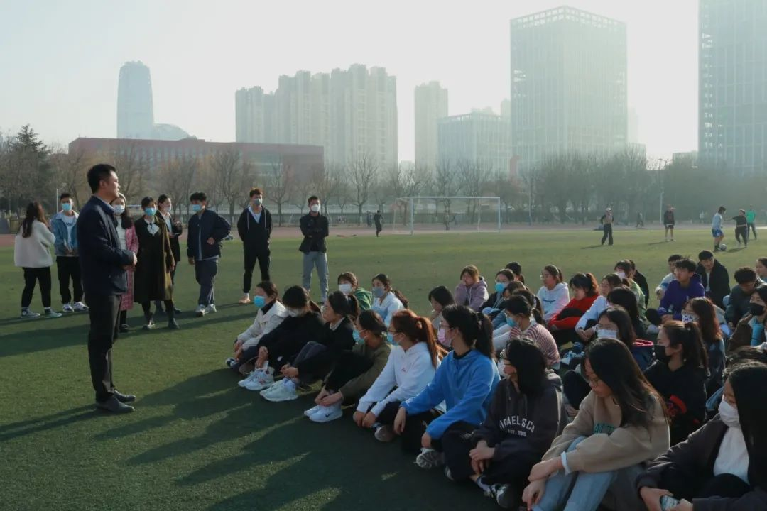 于西操场举行2022年春训启动仪式。学院党委副书记刘伟、2020级辅导员张乃宁、2021级辅导员董青出席仪式,教练张斌、李建成以及各级春训本次队员参加启动仪式。