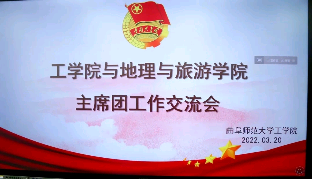 团委学生会主席付玉卓与工学院团委学生会主席朱海龙分别介绍了参会成员、本院团委学生会机构设置等。会上,两学院主席团成员深入交流了各部门日常工作情况。通过自由讨论的形式对工作中遇到的问题,以职能分工、管理制度以及活动举办等方面为重点,进行更加详细、更加具有针对性的分享与学习。会上,两院团委学生会主席总结了经验交流会成果,并对双方未来的工作都表达了美好的期望和祝福。