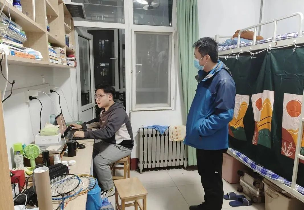 早春天渐暖,关爱入心田。老师来到宿舍不仅有助于帮助学生养成良好的生活习惯,在疫情中保护自己,也促进师生间的交流,增进师生情感,提升地理学子的幸福感。