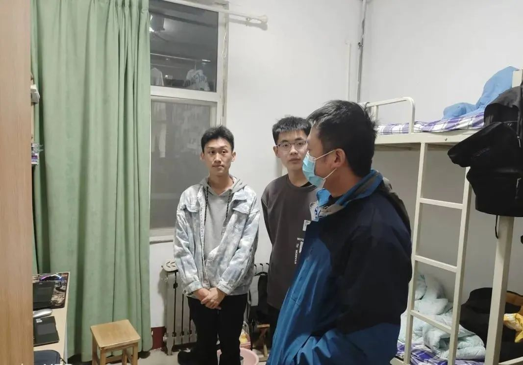 期间,刘伟与同学们亲切交流,就宿舍卫生以及疫情防控中同学们的生活等情况,与大家亲切交谈。他叮嘱同学们要注意休息,注意天气变化,及时增减衣物,防止生病,积极锻炼身体,保持身心健康。期间,刘伟仔细查看各种生活设施,再次提醒同学们注意宿舍安全。