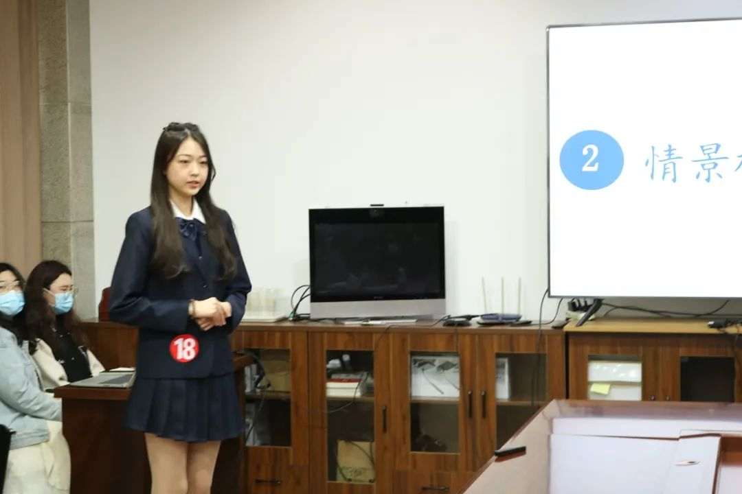 大赛第一环节,选手依次进行VCR展示和主题陈述:王汉成对自己的职业规划是成为一名环境评价工程师,他围绕自我认知、环境分析、职业定位、目标规划四个方面对该职业进行全方位剖析,通过各种测试数据进行自我分析,体现出他与这份职业的高度契合;黄晶蕊以一篇新闻开启陈述,分析了心理咨询师在当今社会中的不可替代性,又将职业需求和个人特点进行综合比较,立下目标,提出实现方式,努力向理想的职业前行。大赛第二环节为情景模拟:王汉成饰演一位环境评价工程师,在河流环境评价中尽显专业素养;黄晶蕊饰演一位心理咨询师,为被心事困扰的人们排忧解难。