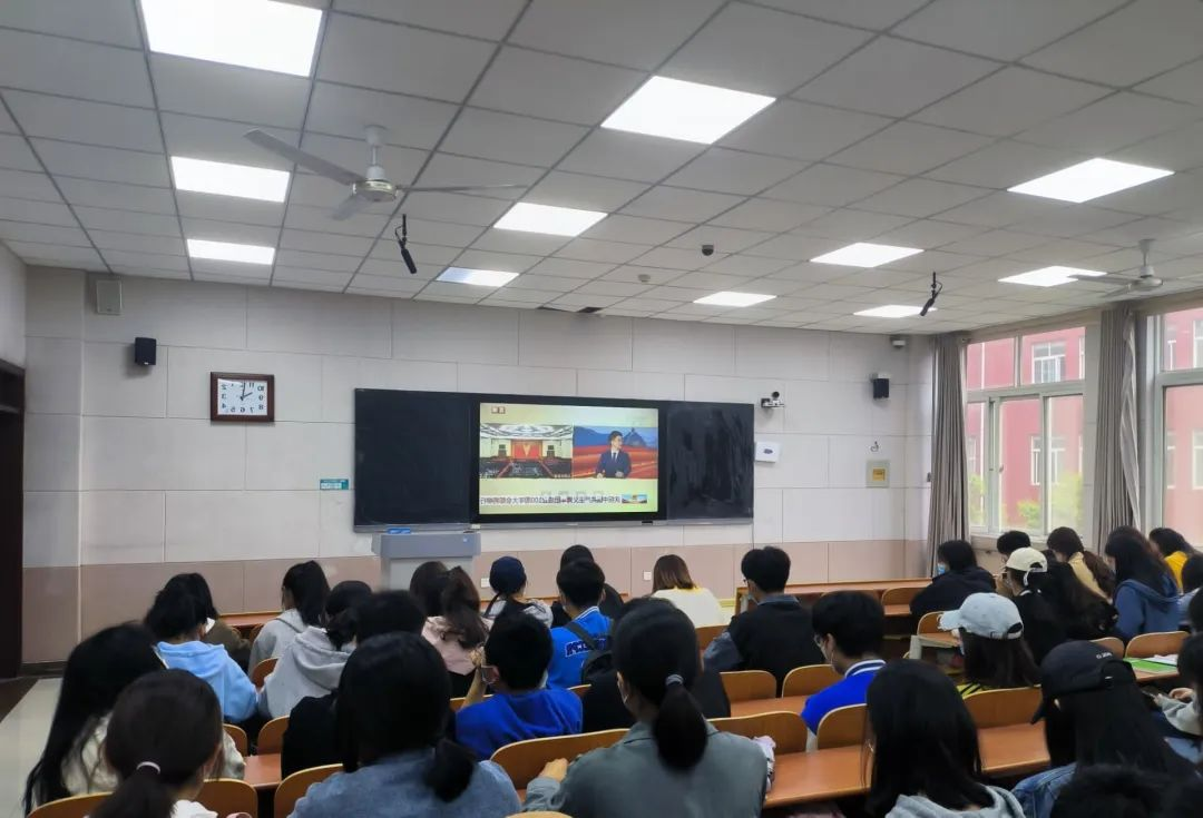 组织观看庆祝中国共产主义青年团成立100周年大会,引导新时代青年学生从五四精神中汲取营养,争做堪当民族复兴重任的时代新人。学院团委书记李梅、本科生党支部组织委员张乃宁、纪检委员董青、学生会全体成员和青马班学员于S203集中学习,广大团员自学。