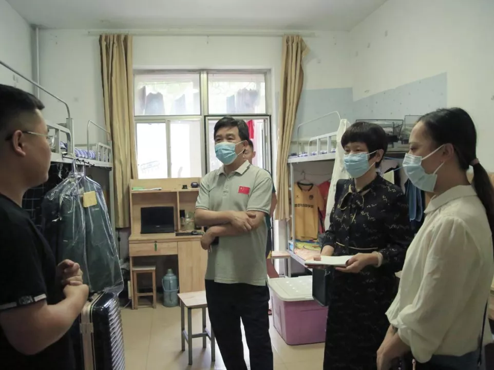 党委书记苏占兵、院长张全景、副书记刘伟、副院长吴军、于伟、院长助理李宝富、团委书记李梅、辅导员田青、张乃宁、研究生辅导员赵岩、研究生秘书朱丽,走进学生宿舍看望返校学生。