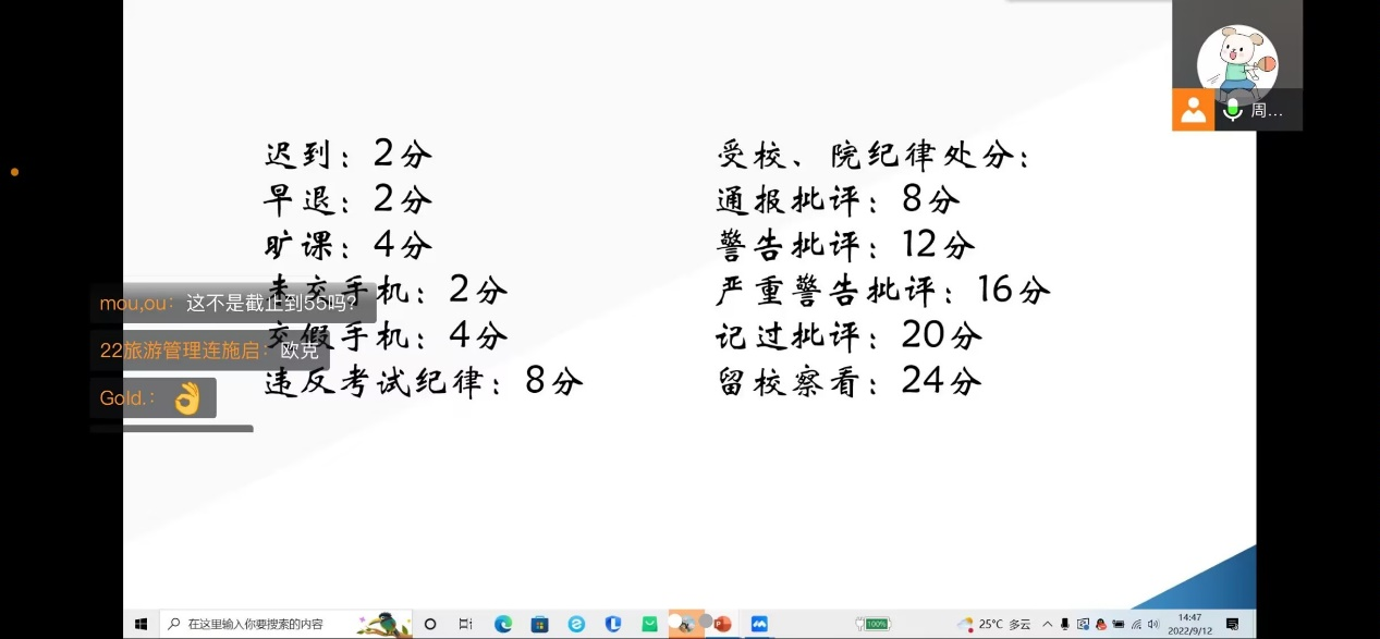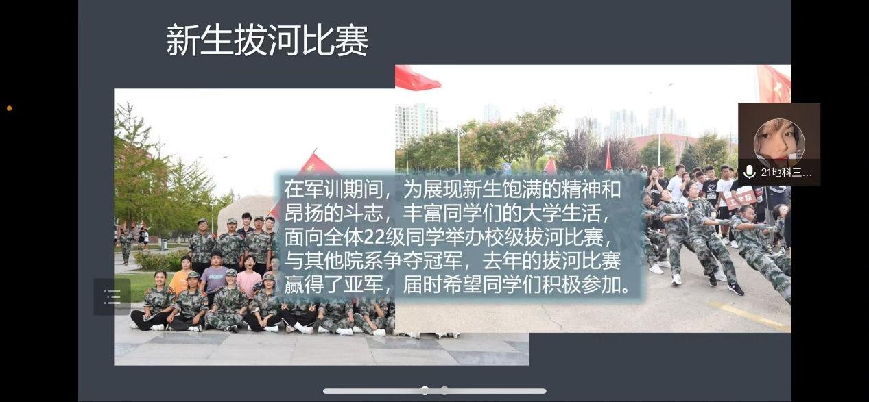 各项规定,细致讲解了学生手册的使用方法,引导同学们进一步加深对学院制度的了解。学习部副部长详细介绍地理科学(师范)、旅游管理、土地资源管理专业所需要考取的证书及可以参加的专业比赛,引导同学们进一步了解所学专业,为未来做准备。体育部副部长介绍了老虎机