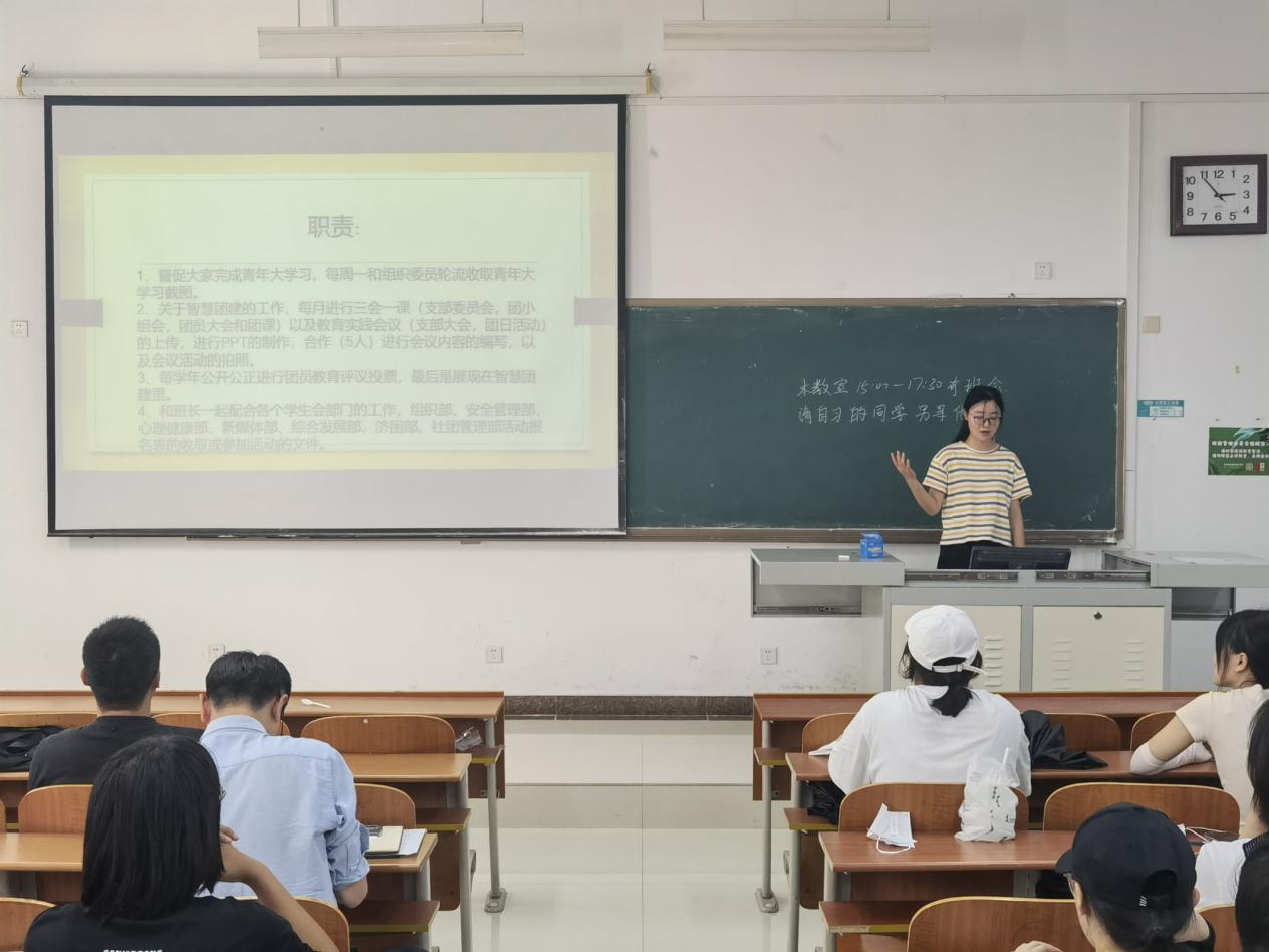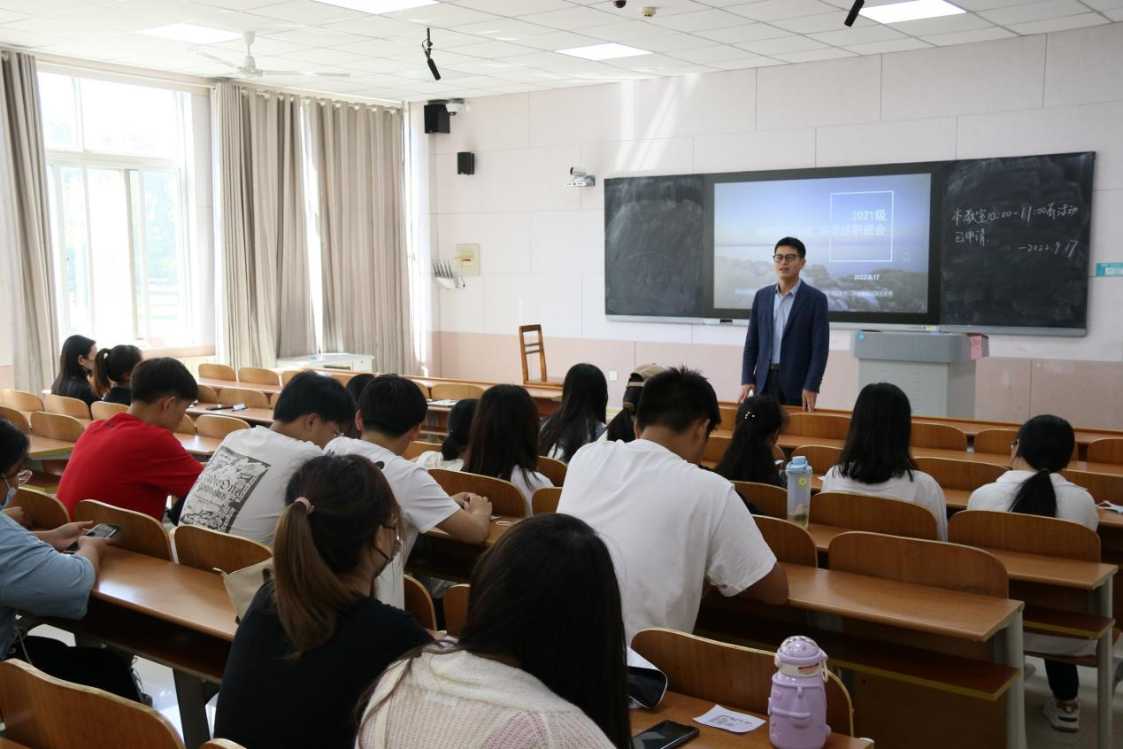 2021级各班相继召开班委述职班会。班会由辅导员田青主持,各班主任及2021级全体同学参加。