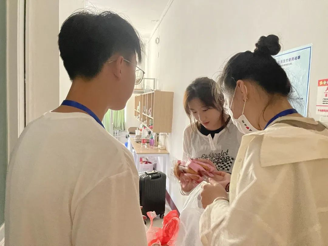团委学生会成员驻守,专人专职,负责信息录入和材料收取等工作。地理学子紧密配合,从新生报到前夕为新生打扫宿舍、搬运生活物资、核对报到信息,到迎新当天协助新生完成核酸检测、行李运送、整理床铺等一系列事项,用无微不至的服务传递着地理人的满心热情。