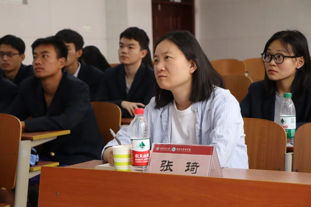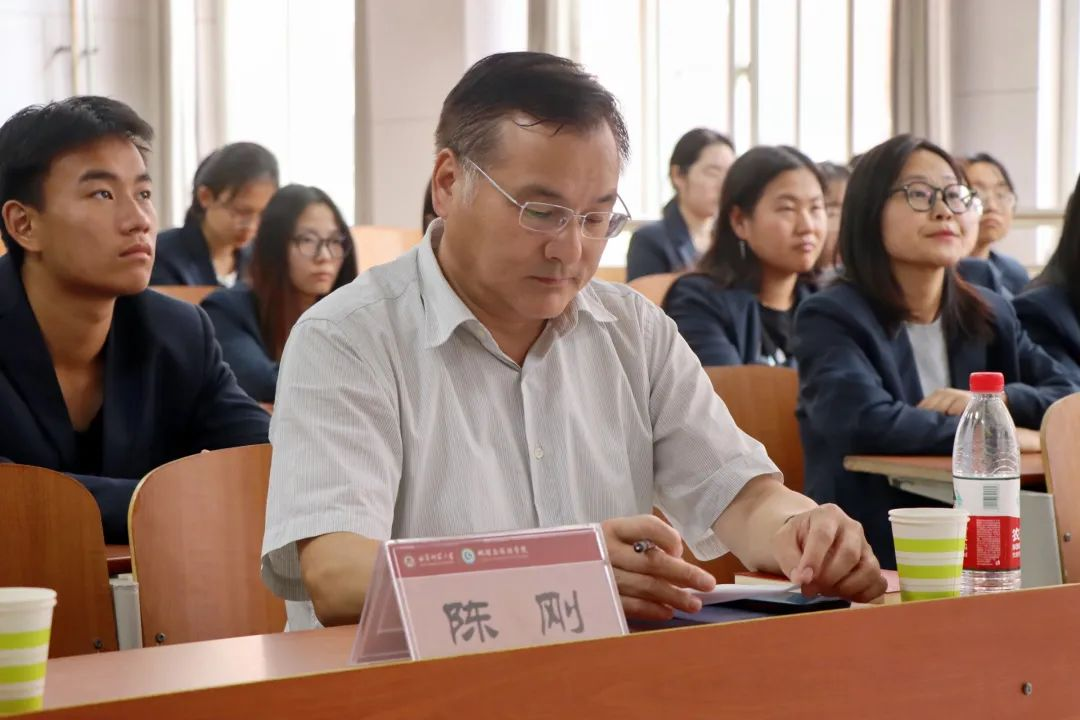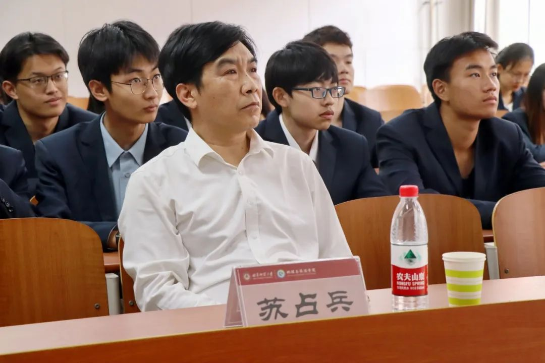 党委副书记刘伟主持,党委书记苏占兵、班主任张琦博士、团委书记李梅、2022级辅导员陈鑫及全班同学参加。