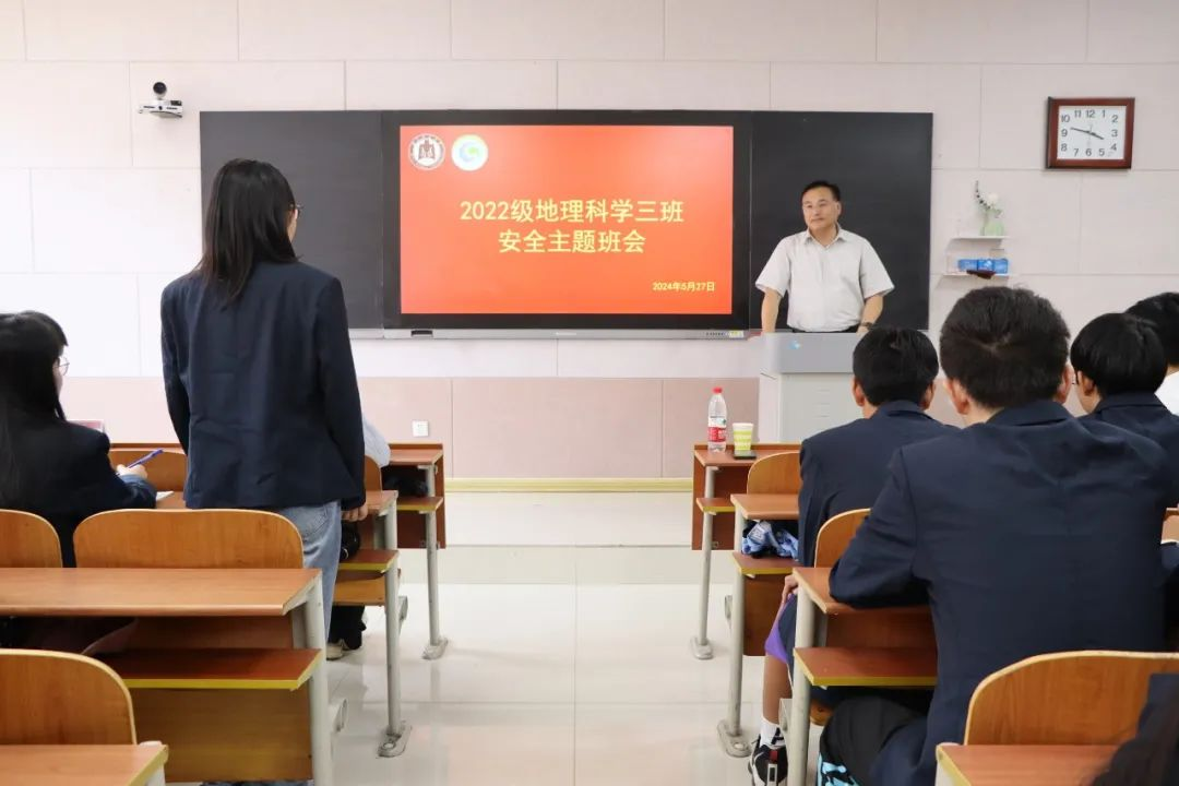 2022级地理科学三班,聆听2022级地理科学三班安全主题班会,并与同学们就学习生活等各方面问题展开交流。本次活动由老虎机