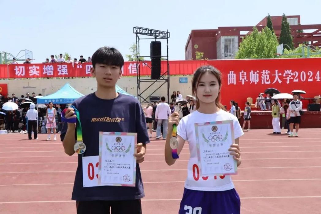 取得优异成绩:李欣瑞荣获女子跳远第一名、裴哲荣获男子100米第一名、王涵星荣获女子跳高第一名、鲍建乐荣获男子运球过杆射门第一名、李欣瑞荣获女子100米第二名、阎婷婷荣获女子颠足球第二名、贾志浩荣获男子110米栏第二名、裴哲荣获男子200米第二名、邢孙逍、吴俊瑶荣获混合投篮第二名、李欣瑞荣获女子100米第二名、谷雨泽荣获男子运球过杆射门第二名、齐晓晓荣获女子跳高第三名、王昱晓荣获男子足球吊圈第三名、阎婷婷荣获女子足球吊球第三名、钟宗润荣获男子5000米第三名、男子4*100m荣获第三名、旱地龙舟男子组第一名、旱地龙舟女子组第二名。