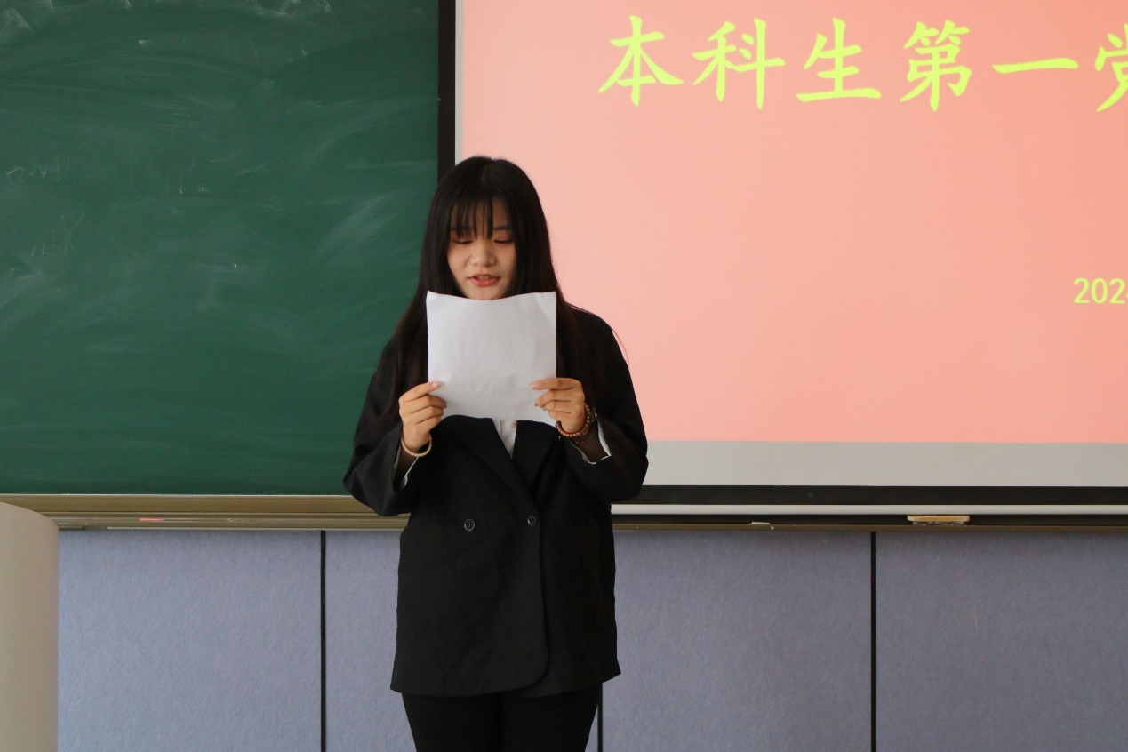 本科生第一党支部召开党员纳新大会。会议由党支部书记田青主持,学院党委副书记刘伟列席,全体党员参加。
