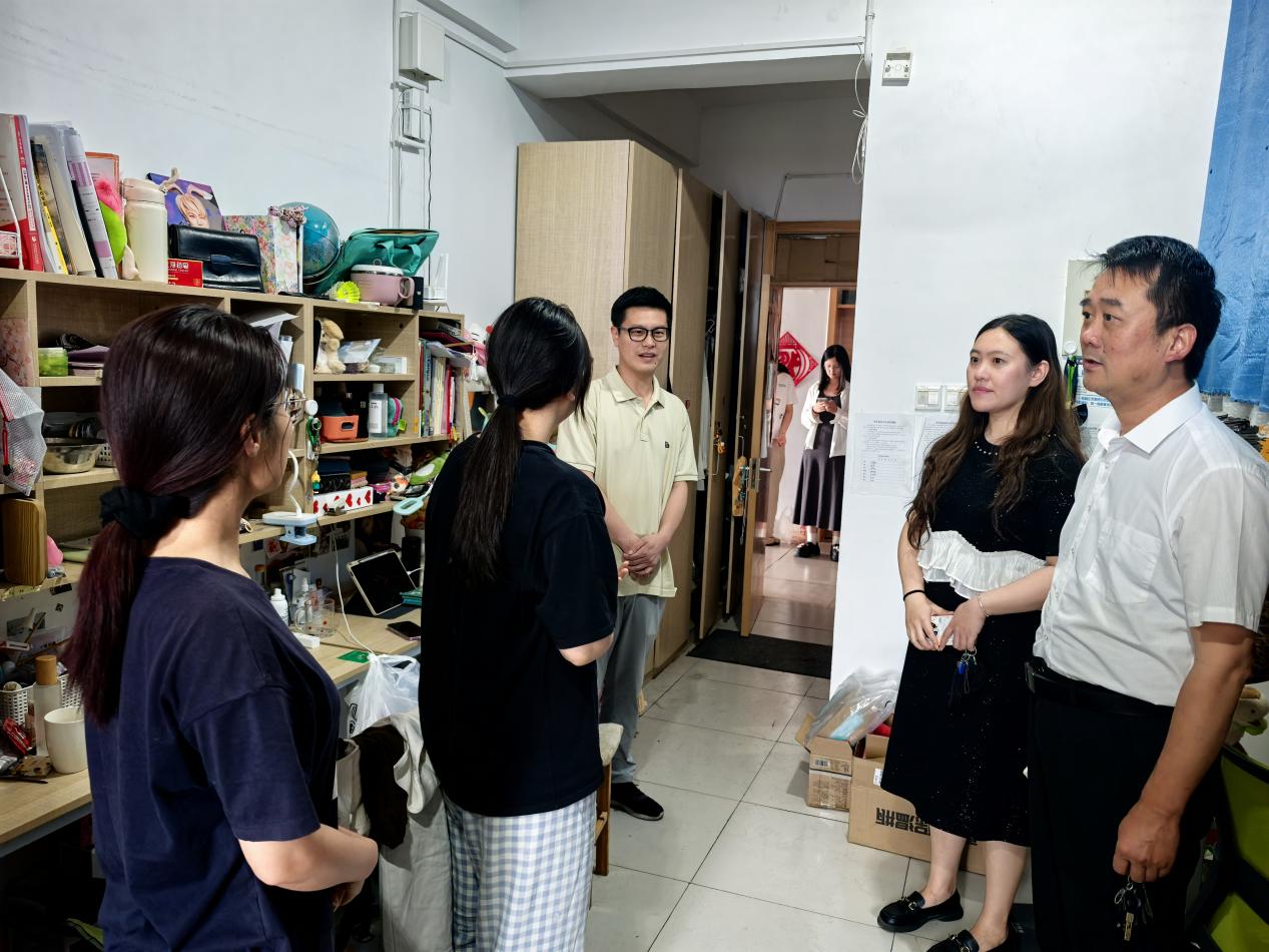 党委副书记刘伟、2021级辅导员田青、董青走进毕业生宿舍,开展了温馨的走访慰问活动。