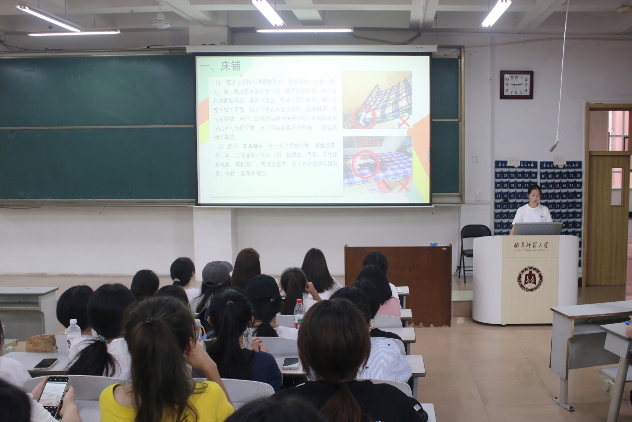 宿舍管理部聚焦宿舍生活规范,针对宿舍管理条例、内务卫生标准进行细致宣讲,着重提醒新生晚归检查流程、用电安全要求、日常卫生标准等注意事项,引导新生在入学初期养成良好生活习惯,共同维护整洁有序的住宿环境。纪检部围绕课堂纪律、请假制度、手机管理、量化考评等内容展开详细说明,明确早晚自习及专业课考勤标注,并特别强调学风建设月期间的纪律管理细则,鼓励新生时刻严于律己、自觉遵规守纪,共同营造积极向上的学习氛围。