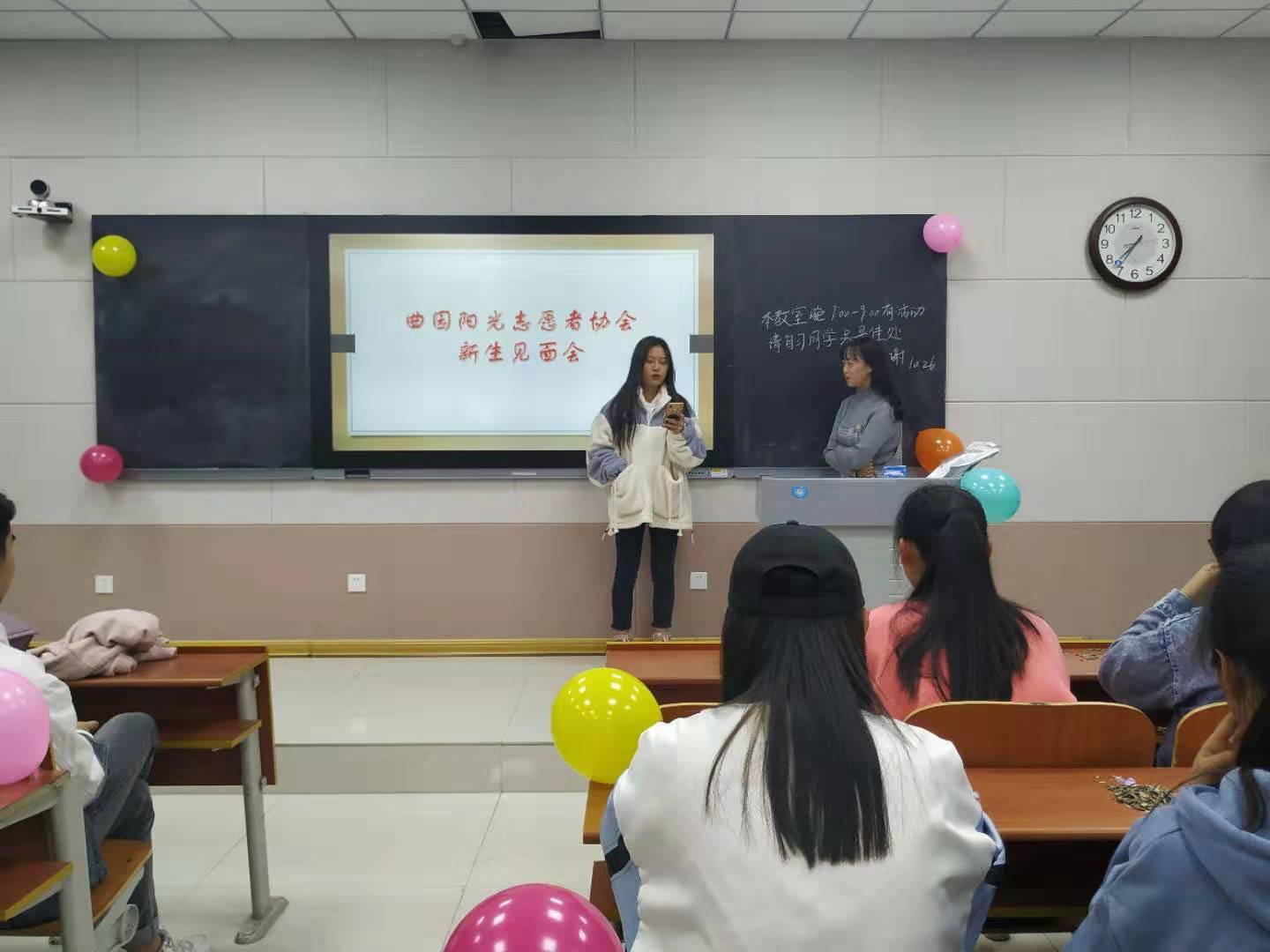 为使新生能够深入了解曲园阳光志愿者协会,10月26日,曲园阳光志愿者协会新生见面会在S203和S205顺利举行,会长、各部部长以及协会新生参加见面会。