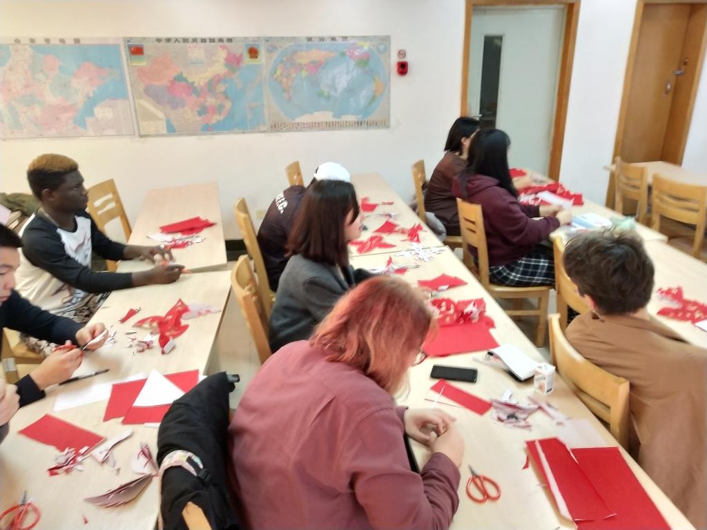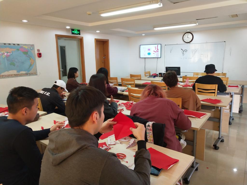 于留学生会馆举办留学生剪纸授课活动,此次活动由老虎机