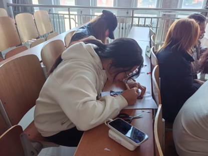 活动现场,剪纸协会成员陈静同学率先展示了多幅精美的哪吒对称剪纸作品。作品里,哪吒或英姿飒爽踏风火轮,或威风凛凛持乾坤圈,栩栩如生的形象引得留学生们惊叹连连。借此机会,留学生们深入了解了哪吒在中国神话中的重要地位,他代表的勇敢、正义精神,正是中华民族传承千年的价值观。随后,陈静同学为留学生们详细讲解对称剪纸技巧,演示纸张折叠方式及剪刀、刻刀的正确使用方法。实践环节,留学生们热情高涨,拿起工具创作。有的留学生为剪出哪吒飘逸的衣带,反复琢磨角度;有的专注刻画哪吒的表情,力求展现其神韵。教室里满是剪刀的咔嚓声和轻声讨论声,文化的交融在这一刻生动呈现。随着时间推移,一幅幅创意的哪吒对称剪纸作品诞生,虽然略显稚嫩,但每一幅都饱含留学生们对中国文化的热爱。