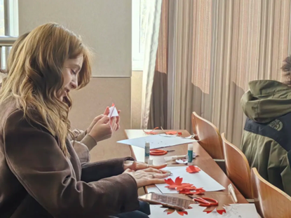 活动伊始,教学部的郭宇婷同学向留学生们简要介绍了剪纸艺术的历史渊源、文化内涵和艺术价值,激发了留学生们对剪纸的浓厚兴趣。随后,郭宇婷同学演示了剪纸的基本技法和步骤,耐心讲解各种复杂图案的裁剪方法,现场特别展示了协会成员提前创作的"七十华诞"、"四十芳华"主题剪纸作品,生动体现了校庆院庆元素与传统技艺的巧妙融合。留学生们认真聆听讲解,仔细观察示范动作,在协会教学部成员指导下,留学生们积极动手操作,一张张红纸在留学生们的手中变成了一副副生动传神的剪纸作品。活动现场充满了欢声笑语,留学生们纷纷举起自己的作品拍照留念,记录下这难忘的瞬间。