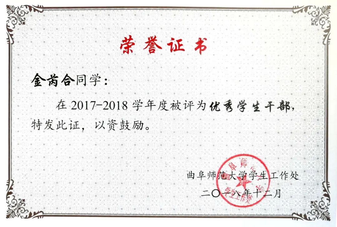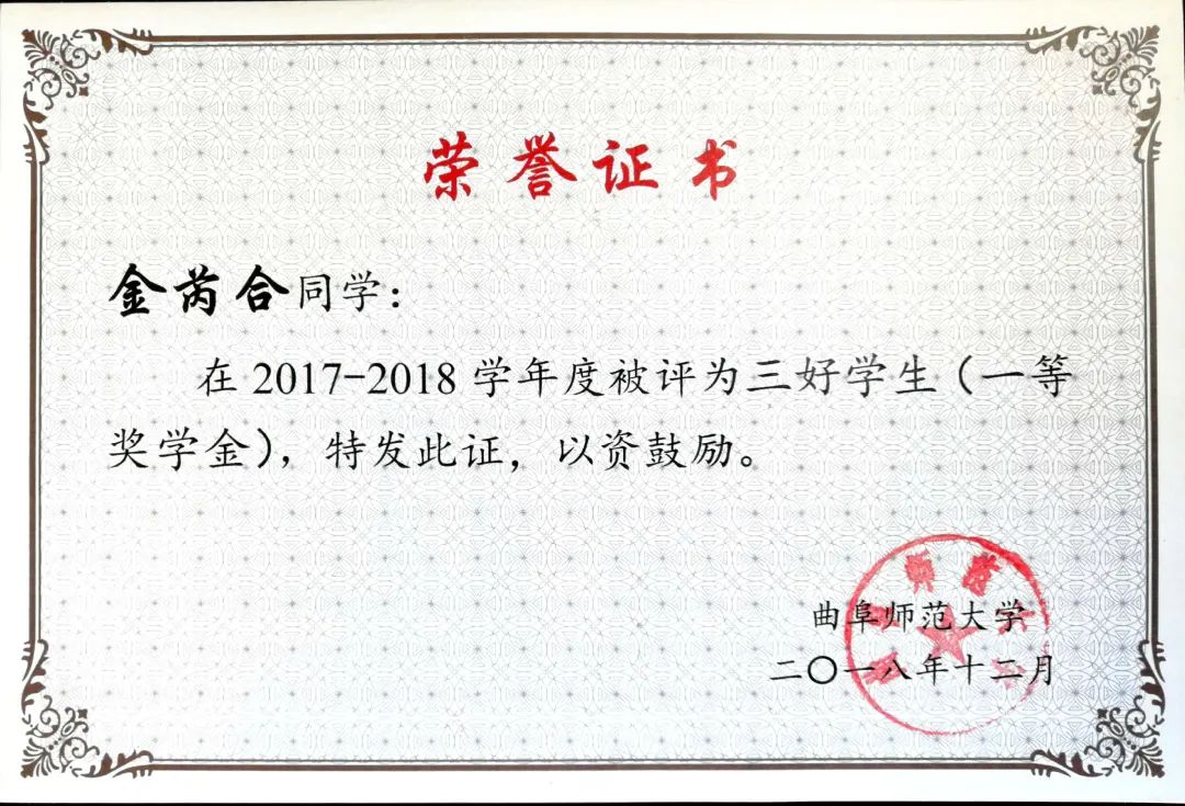 她是国家奖学金、叶圣陶奖学金、校长奖学金、一等奖学金的获得者,也是五好学生标兵、优秀学生干部;