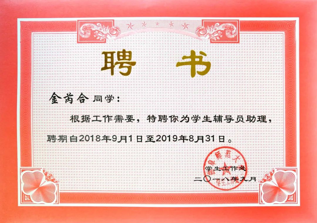 她是辅导员助理,所在的班级成为了学校的模范班级,获得了“优秀团支部”、“百优班级”的称号;