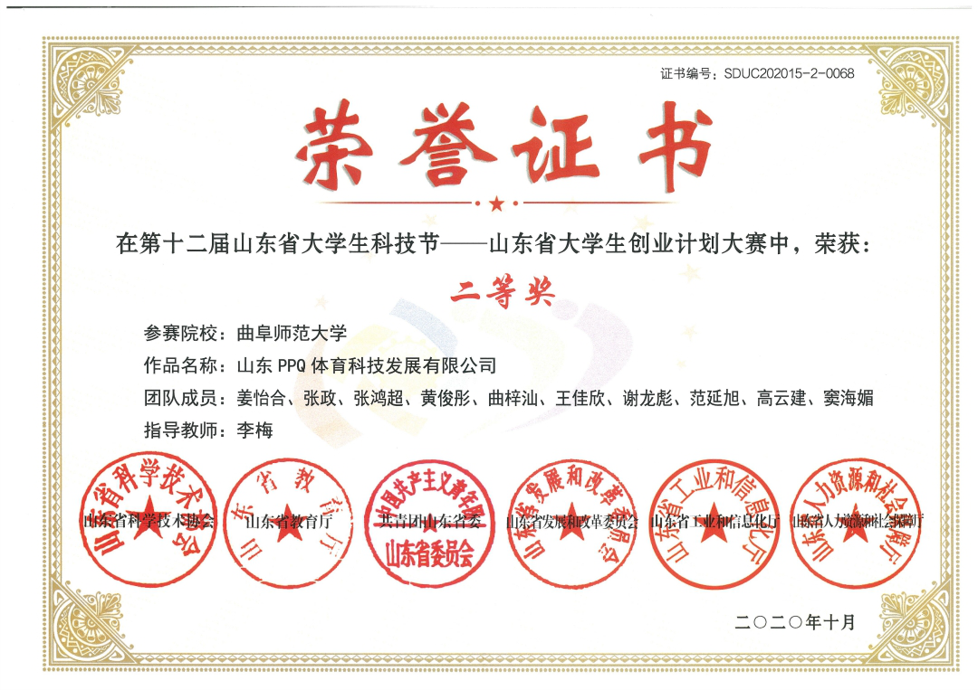 获奖奖项:2020年第十一届山东省大学生创业计划大赛二等奖