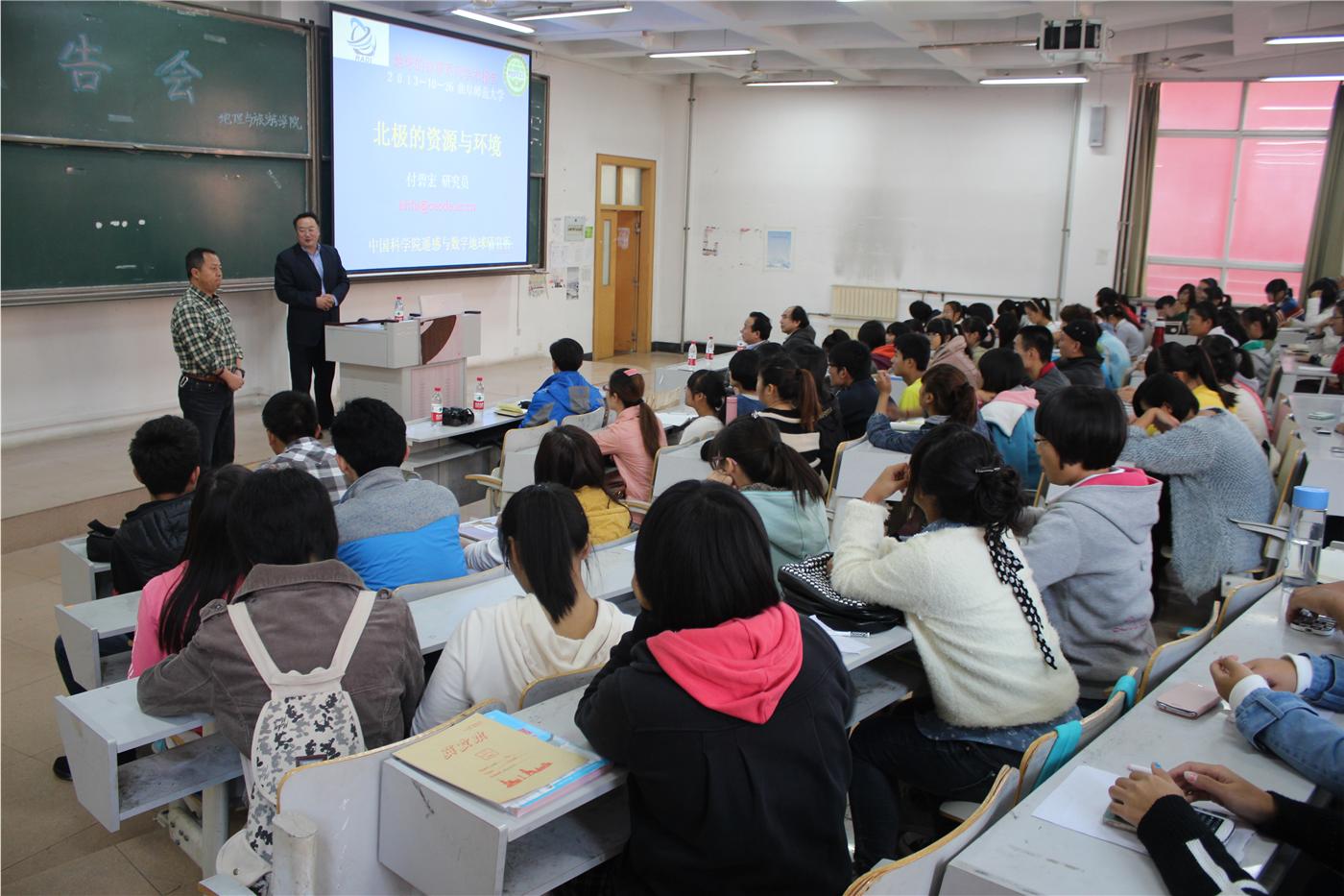 报告会上,付碧宏教授做了题为“北极的资源与环境”专题报告。报告分别从北极的“前世今生”、北极的资源、北极的环境、聚焦北极——我参加的一次北极考察等四个方面系统的介绍了北极的知识和各家观点,强调北极资源开发的重要意义。随后,二宫芳树研究员就遥感技术与矿产资源的勘测做了学术报告,结合实际例子,介绍了资源卫星遥感技术的发展历史与现状、地球资源技术卫星系列发展历史、遥感图像处理软件的更新等三方面问题,受语言限制,二宫芳树研究员全程英语报告,付碧宏教授热心翻译。语言有障碍,但学术无国界。