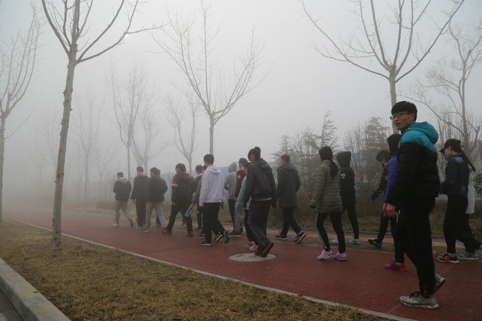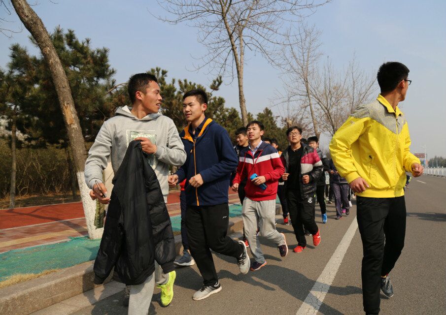 团委学生会主席孙德健,副主席张建恒,体育部部长王京龙,教练侯连勇带领春训的运动员们参加此次海边拉练活动。