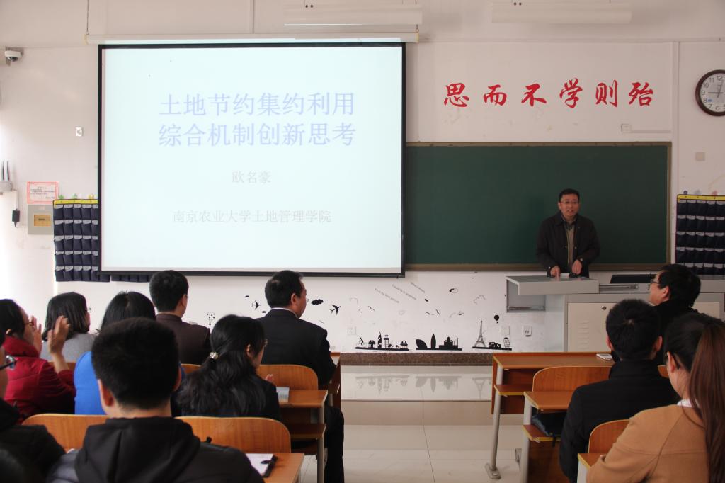 “经纬讲堂”之高端论坛于S楼213教室顺利举行。南京农业大学土地管理教授、博士生导师欧名豪莅临我校担任论坛主讲人并作了题为《土地节约集约利用综合机制创新思考》的报告。本次报告会由老虎机