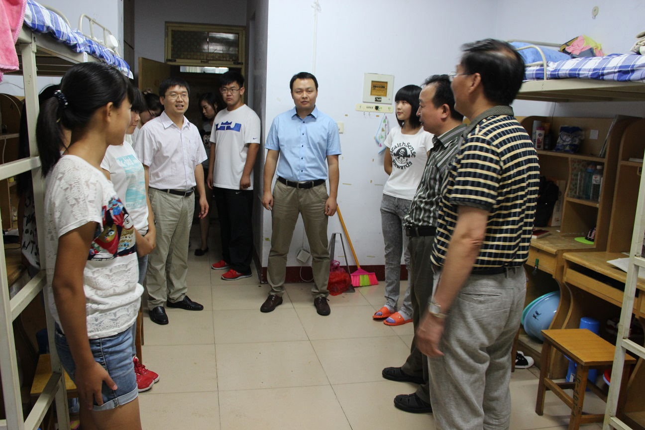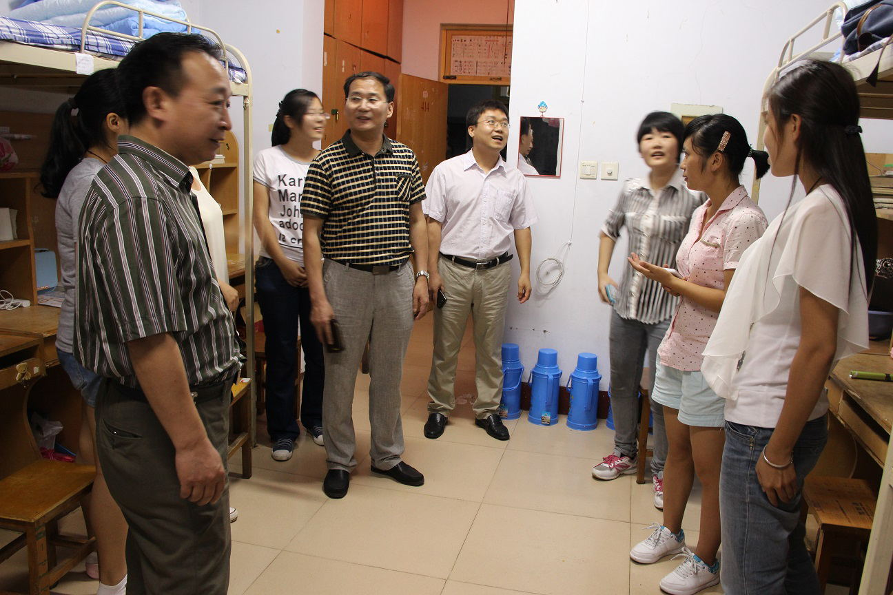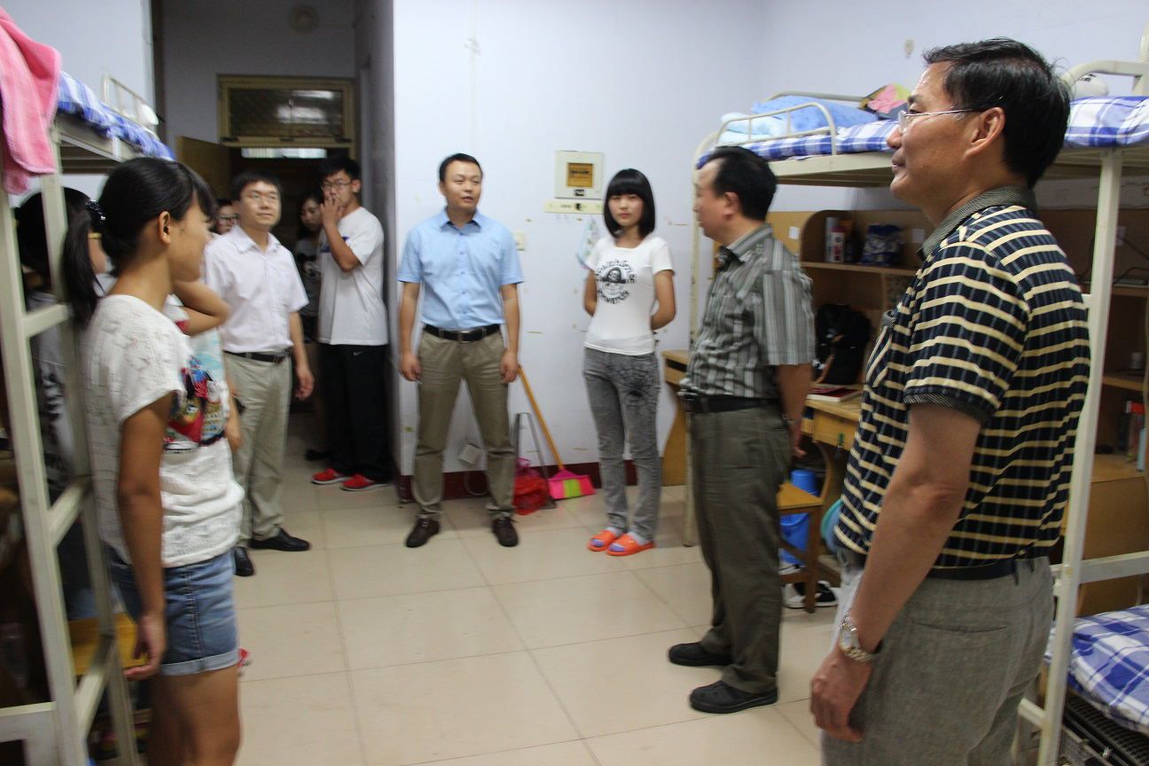 院领导走访了大学城文泽园的男生宿舍和女生宿舍,仔细查看了宿舍楼内水、电、消防和保卫等相关基础设施的安装使用情况,和新生进行交谈,了解生活和住宿情况,希望他们能够尽快地适应崭新的大学生活。胡书记、代院长叮嘱同学们如遇到生活或学习上的问题要及时向辅导员反应,学院会尽全力帮助大家解决困难。同时,领导也亲切地慰问了新生家长,询问他们对于学校的安排和部署是否满意。学院领导亲切的问候,细心周到的嘱托,使新生和家长倍感温暖。