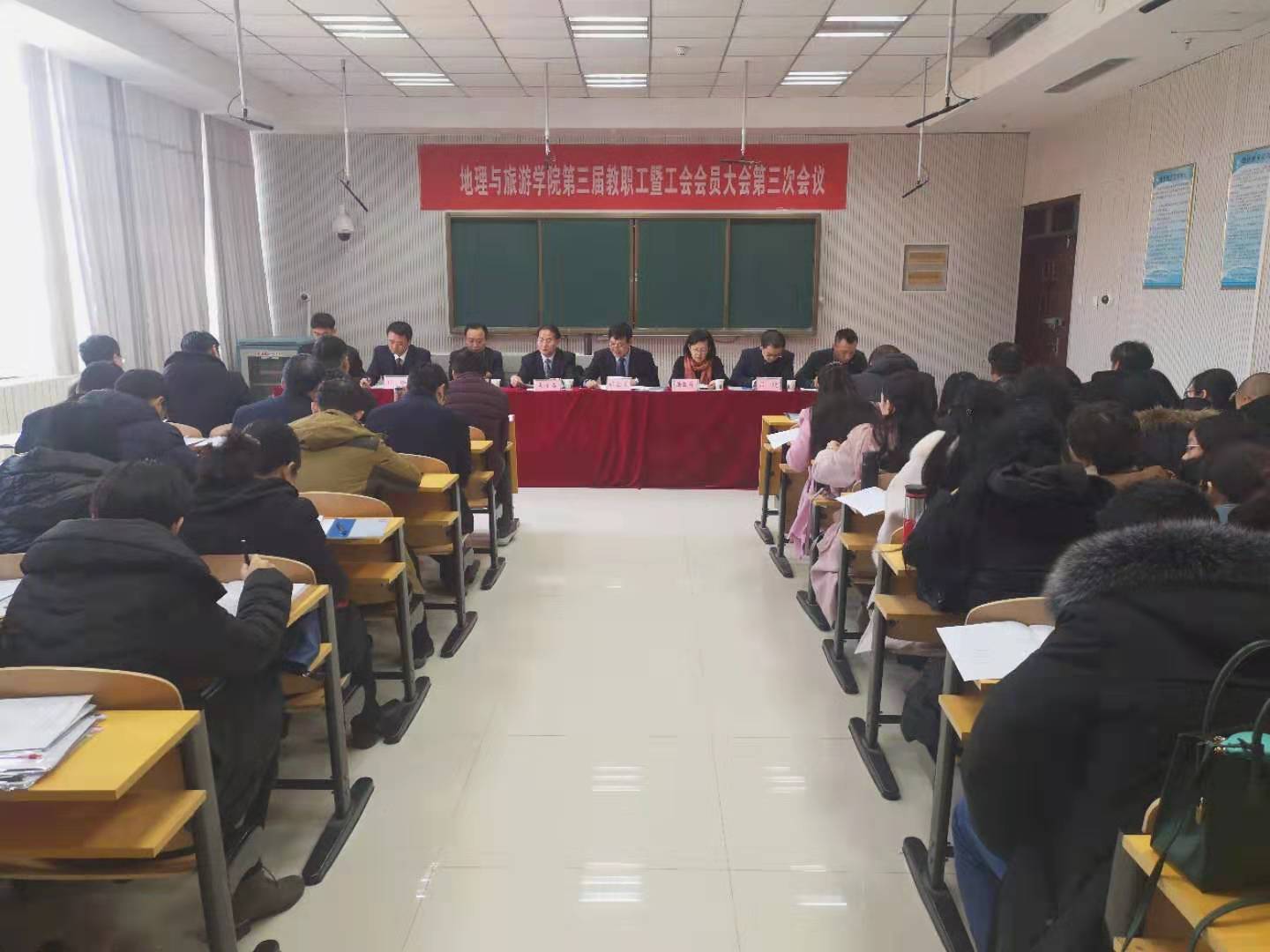 第三届教职工暨工会会员大会第三次会议于2019年2月21日召开。全院教职员工齐聚一堂,建言献策,总结盘点过去一年的成绩与不足,分析研判面临的机遇与挑战,全面谋划2019年的工作布局,共商学院新一年发展大计。全体教职工参加大会,学院党委书记胡长春主持大会。