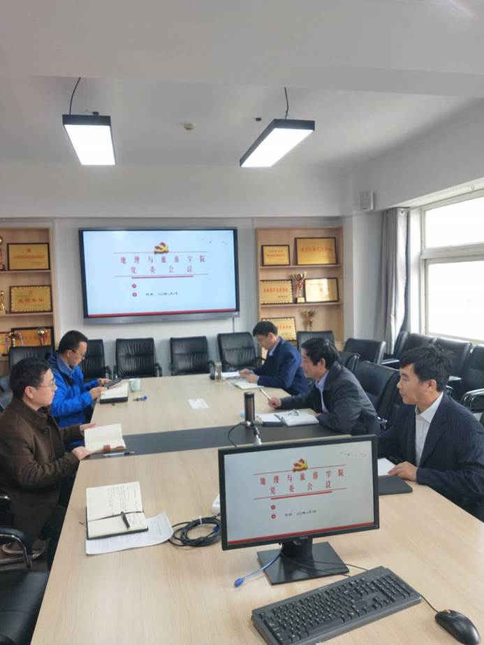2020年4月8日下午2:00,学院党委在党员活动室召开会议,专题研究学院党建工作,党委书记苏占兵、院长张全景、党委副书记刘伟、副院长吴军,党委委员于伟、刘志刚参加会议,苏占兵主持会议。