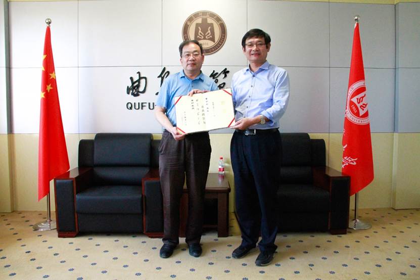 苏占兵接收董金社教授向学院赠送的图书《山东省历史地图集》