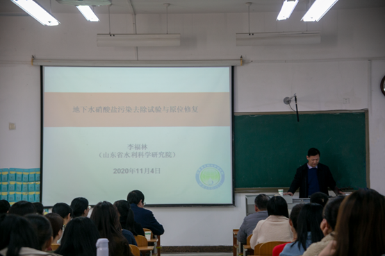 1985级杰出校友、山东省“有突出贡献的中青年专家”、水利部“青年科技英才”、山东省水利科学研究院副院长李福林研究员应邀来我校地理旅游学院作了题为“地下水硝酸盐污染去除试验与原位修复”的学术报告,并指导了学院的学科建设。学院专业教师、研究生共一百余人参加了报告会。报告会由学院院长张全景教授主持。
