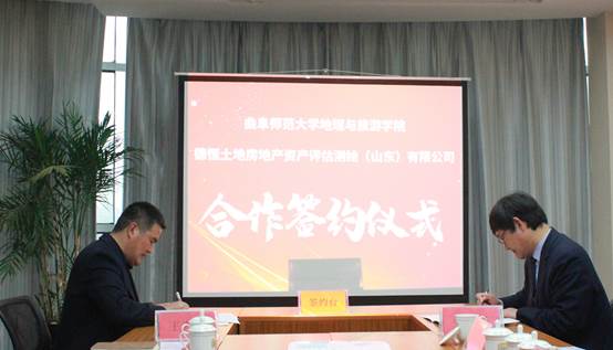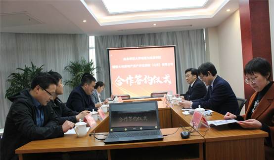 党委书记苏占兵,院长张全景、人文地理教研室纪贵红老师;德恒土地房地产资产评估测绘(山东)有限公司董事长王为峰及班子成员参加签约仪式。