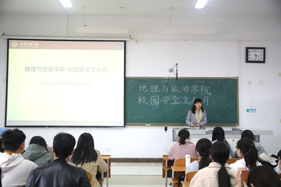 于JS413教室举办“校园文化安全月”主题班会。班会由研究生辅导员赵岩老师主持,2020级全体研究生和研究生会干部参加班会。