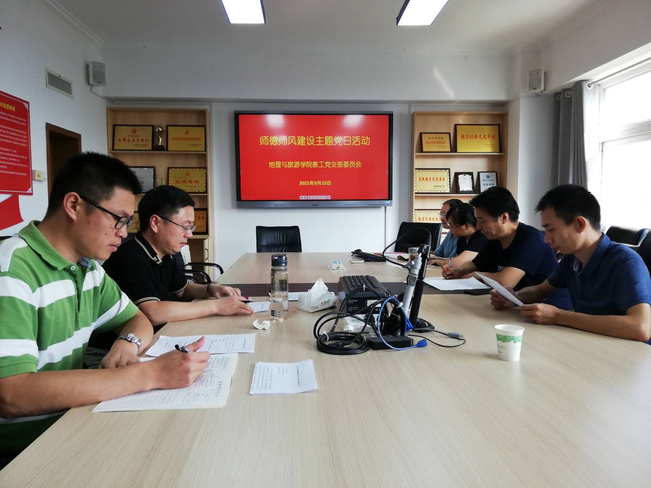 9月15日,教工党支部召开支部委员会会议,党支部书记刘志刚强调了师德师风建设的重要意义,对活动的开展做了详细部署,要求各党小组提高思想认知,认真学习《习近平给全国高校黄大年式教师团队代表回信》《关于深入学习宣传贯彻党的教育方针的通知》《习近平在中央党校(国家行政学院)中青年干部培训班开班式上的重要讲话精神》等系列文件,要结合自身工作实际,深入查摆问题和不足,进一步坚定政治立场,筑牢思想防线,弘扬师德,铸就师魂。