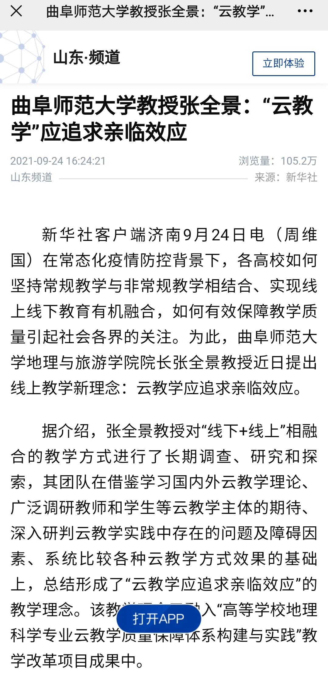山东教育新闻网转载链接:“云教学”应追求亲临效应_山东教育新闻网//www.sdjyxww.com/jysp/40567.html