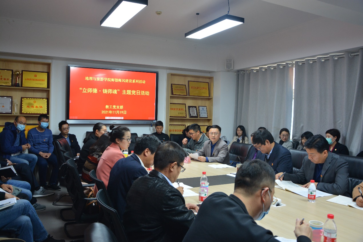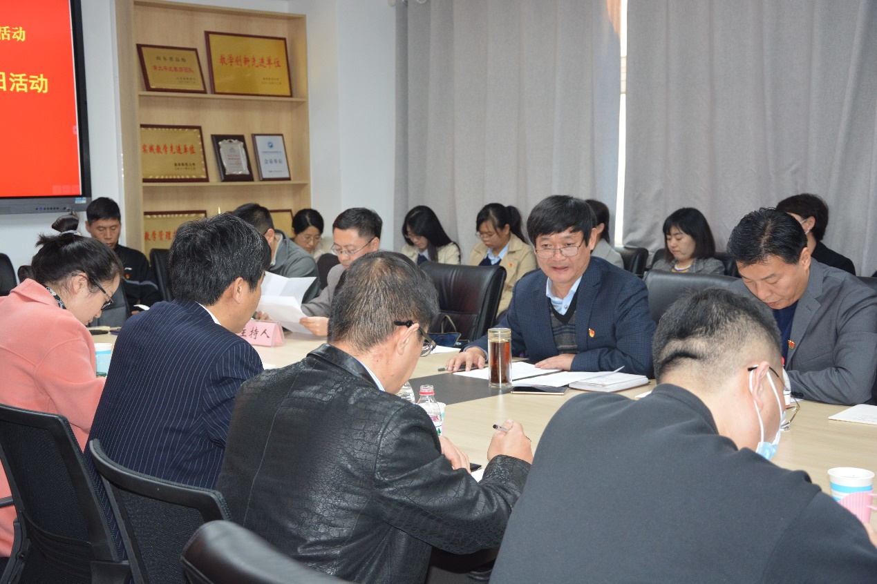 教工党支部在办公楼2401会议室组织开展了“立师德·铸师魂”主题党日活动。日照校区各学院教工党支部书记到场观摩。教工党支部书记刘志刚主持本次活动。