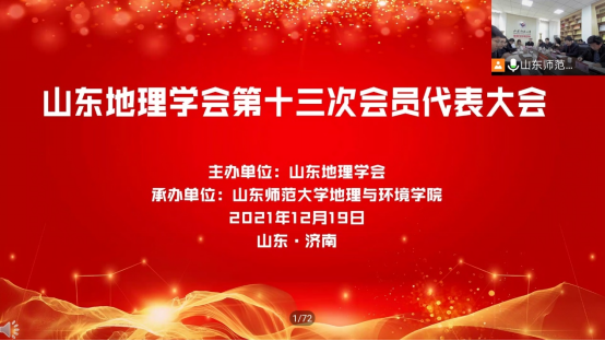 2021年12月19日,山东地理学会第十三次会员代表大会通过线下线上相结合的方式顺利召开。老虎机 教师代表张全景、代合治、吴军、于伟、李宝富、刘志刚、贺山峰、周维国、孙丕苓、陈艳锋、徐凯、刘庆果参加了会议。