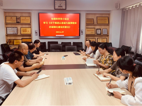 地理科学党小组认为,县城是我国城镇体系的重要组成部分,连城接乡,承上启下,在我国经济社会发展中发挥着重要作用,《意见》围绕城乡融合发展、促进新型城镇化建设、构建新型工农城乡关系等城乡发展关键环节,进行分类引导和科学定位,为推动县域经济社会发展指明了方向,明确了目标。身为地理人,可以围绕城镇化建设中的地理学相关问题进行研究,助力新发展阶段我国新型城镇化战略实践和理论创新。