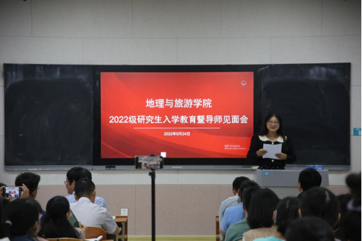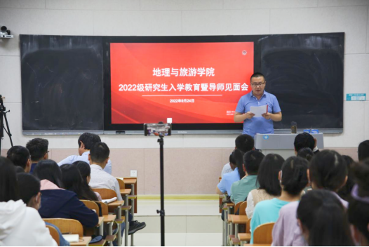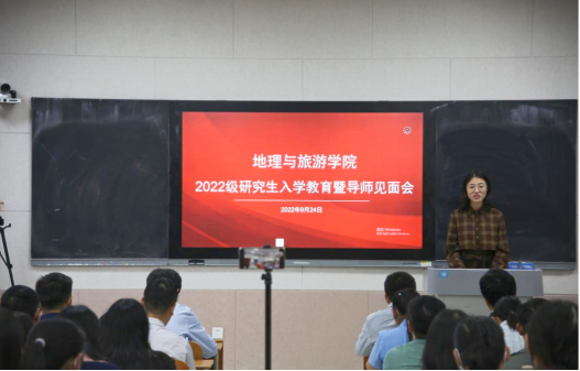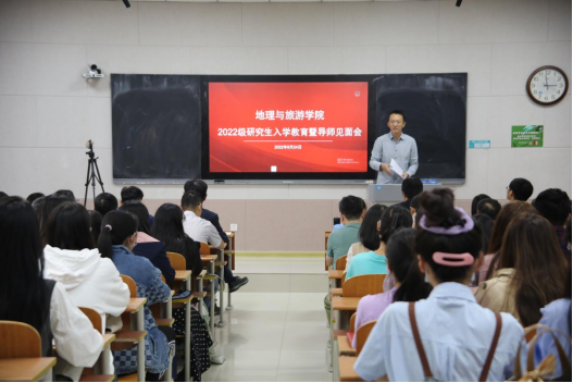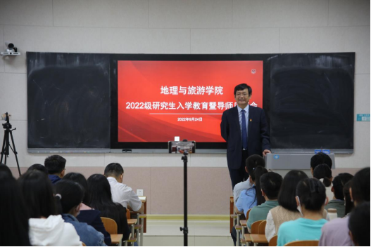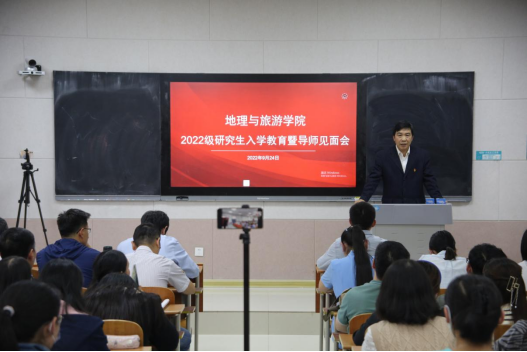 张全景院长向同学们详细地介绍了学校的发展历程、办学特色及教学成果,系统地讲解了学院基本概况、专业划分、课程学习、论文写作等重要内容,并对同学们未来的学习生活提出要求。他指出,全体研究生在学期间一定要明确学习目标,做好研究规划,培养从事实际工作的能力,并为进一步的学术研究打好基础。他强调,全体研究生要树立自学意识、能力意识、创新意识、纪律意识及科学的情感、态度、价值观,端正学习态度,培养创新思维,自觉锻炼科研能力。他希望每位同学都能够成长为具有君子风范、家国情怀、乐学精神的优秀地理学者和地理教育工作者。