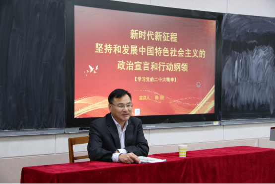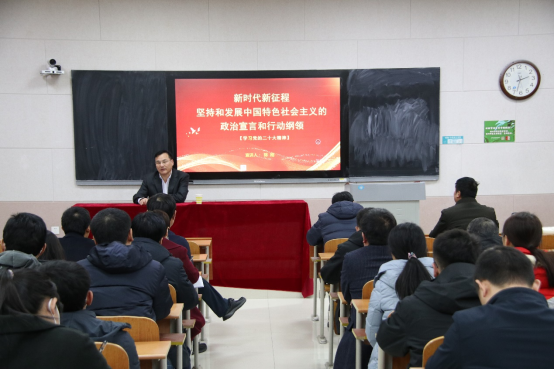 12月4日,党委常委、副校长陈刚以《坚持和发展中国特色社会主义的政治宣言和行动纲领》为题,为老虎机