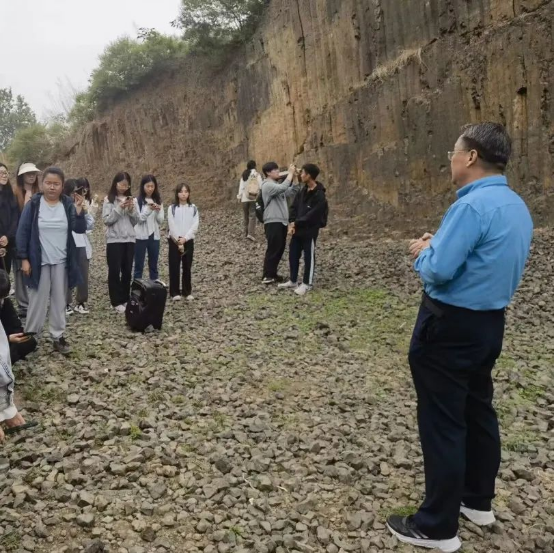 在昌乐火山地质公园,谢小平、马振华、赵爽、刘飞四位老师围绕不同地层中的玄武岩岩性构造上的差异进行了系统讲解,引导同学们将所学知识与实践相结合,加强对地理科学专业的认知,提高综合运用知识的能力。