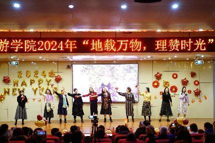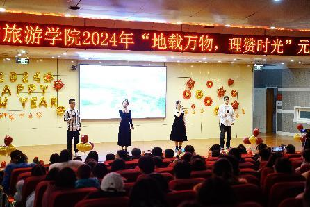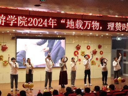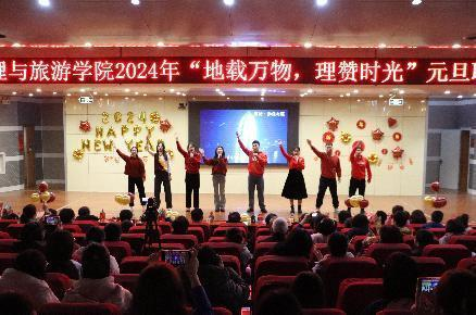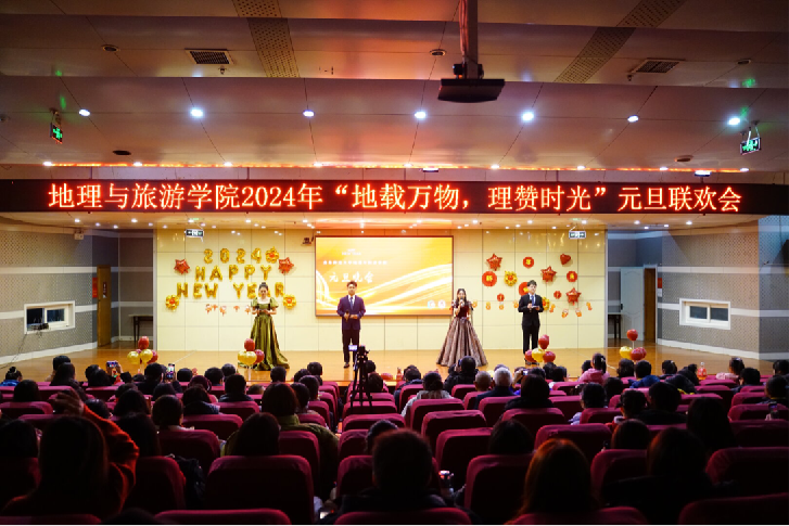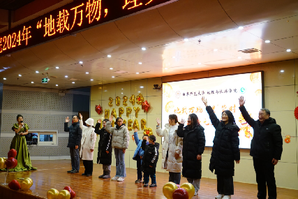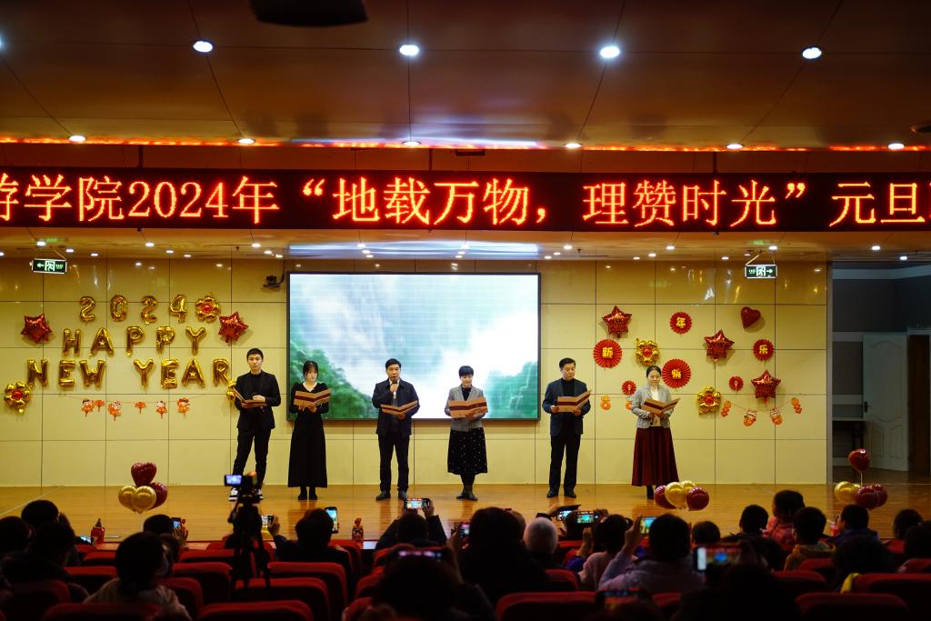2024年元旦联欢会于图书馆报告厅举行。学院党委书记苏占兵、党委副书记刘伟、副院长吴军出席。学院全体教师和研究生参加。