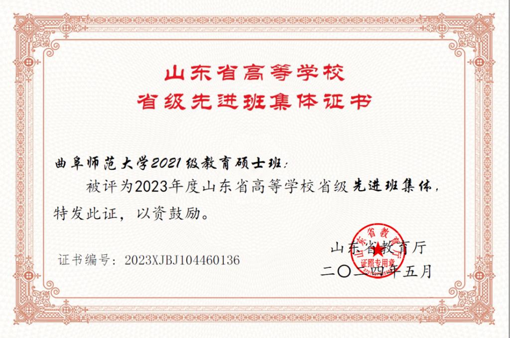 2021级教育硕士班荣获山东省高等学校省级先进班集体。