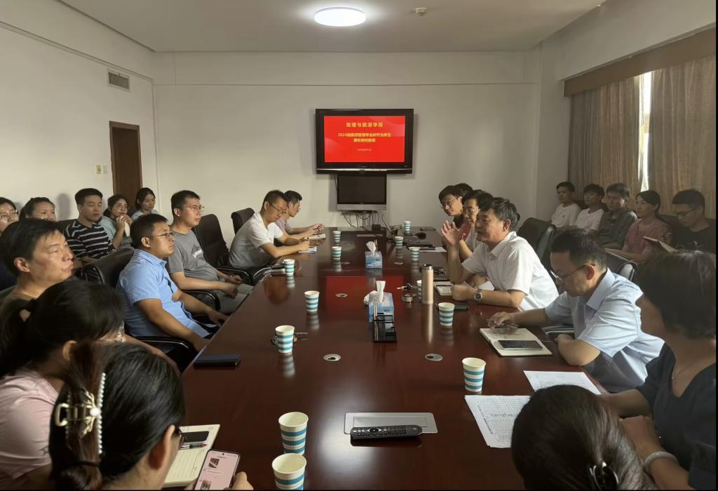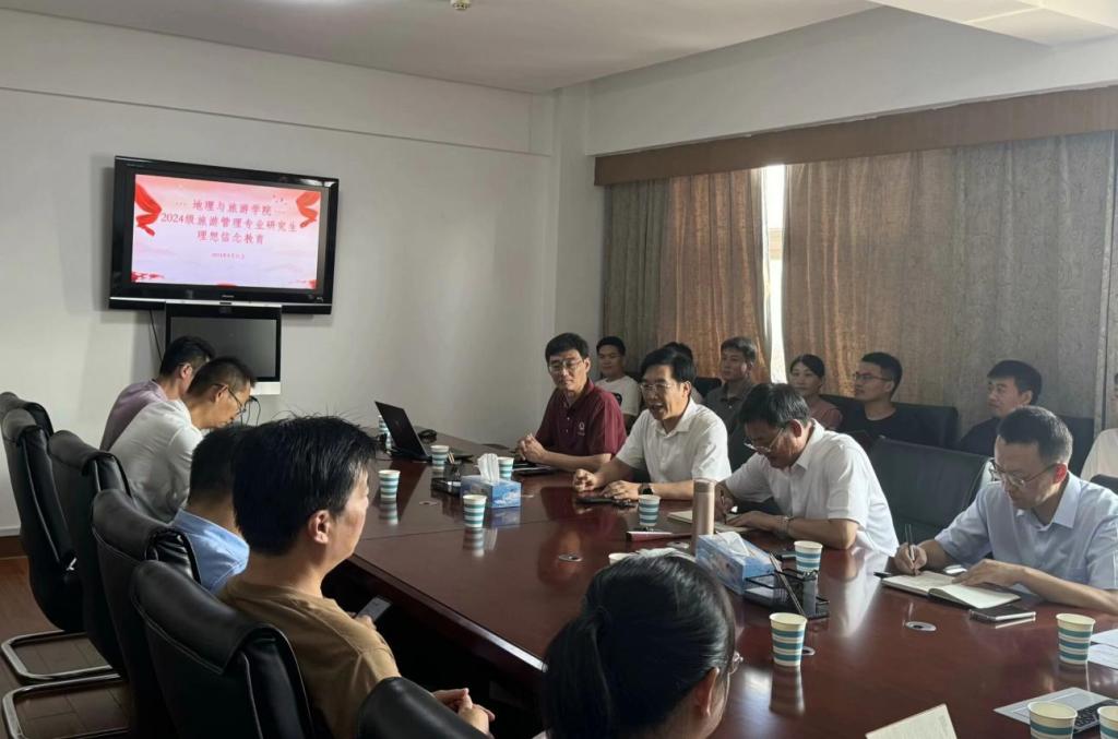 于会馆2403召开2024级MTA研究生入学教育大会。学院党委书记苏占兵,院长张全景,副院长吴军、于伟,辅导员赵岩出席会议,全体旅游管理硕士导师及2024级MTA研究生参加会议。