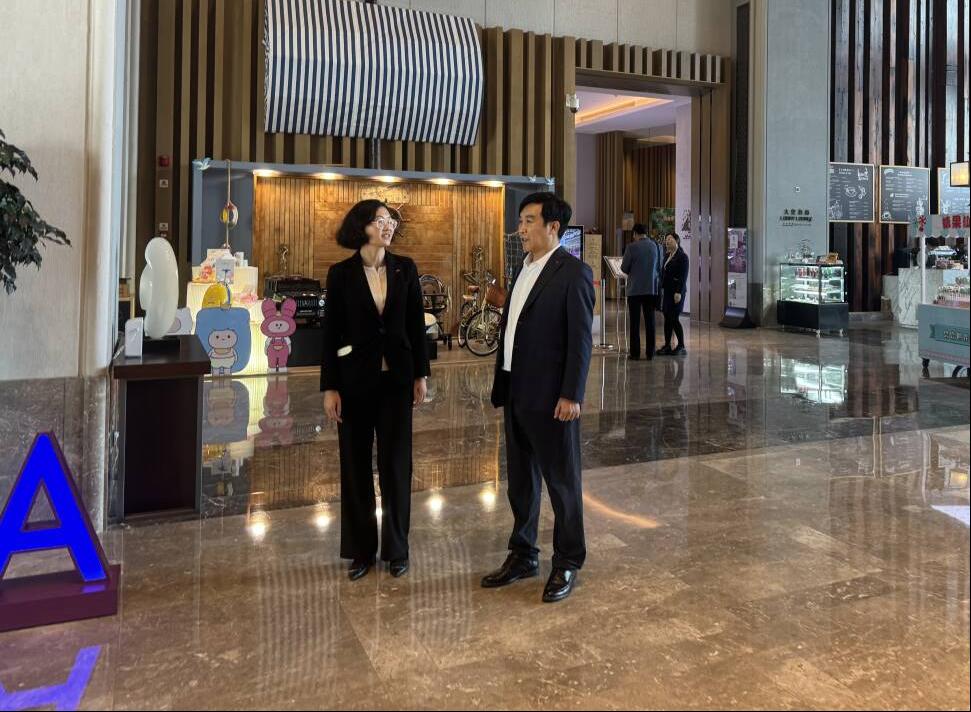 苏占兵书记访问了青岛东方影都皇冠假日酒店,与酒店人力资源部负责人高领歌经理围绕酒店岗位设置、人才需求进行了交流。