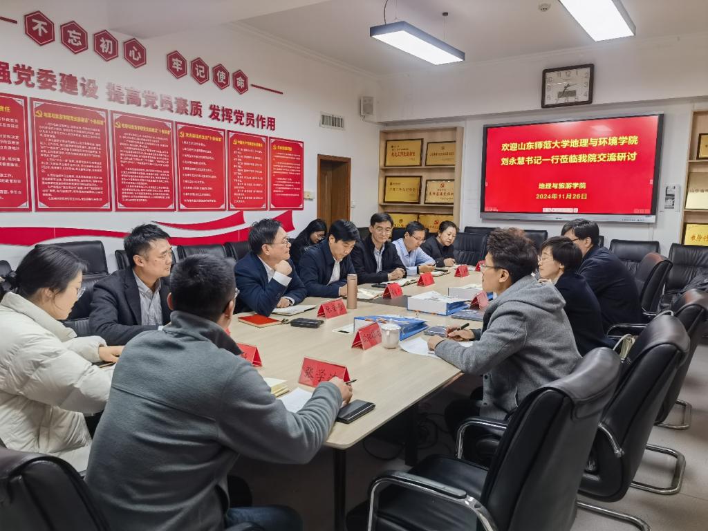 11月26日下午,山东师范大学地理与环境学院党委书记刘永慧、党委副书记梁开敏、团委委员欧阳德龙一行来访,就高校基层党建工作开展交流座谈。老虎机