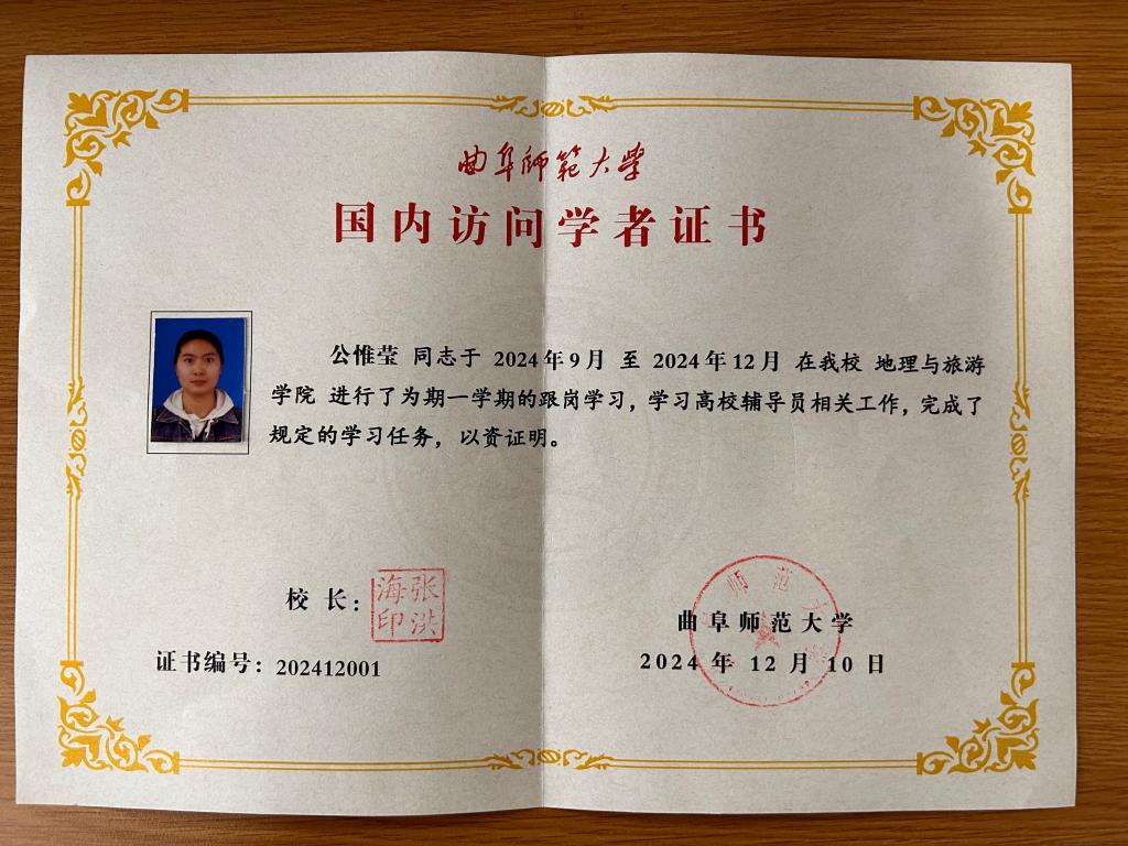 按照教育部师范教育协同提质计划安排,进一步加强校际间合作交流,实现优势互补。本学期伊始,拉萨师范高等专科学校辅导员公惟莹来到我校地理与旅游学院进行为期一个学期的国内访学跟岗学习。12月16日下午,学院为公惟莹老师组织的国内访学结业座谈会在会馆401温情落幕,为这段跨越山海的学习交流之旅画上圆满句号。老虎机