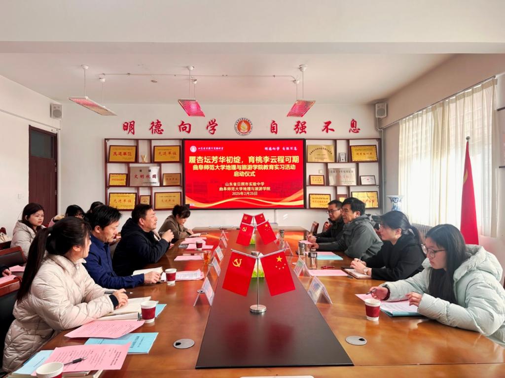 为深化院校交流合作、培育高素质专业人才、实现双方互利共赢的发展目标,2月25日,学院党委书记苏占兵、实习指导教师台晓丽、贾子康及六位实习生前往日照市实验中学,举行教育实习见面会。日照市实验中学党总支书记尹力群、校长许崇梅、副校长娄善伟、教务处主任金元凤及地理组全体教师共同出席会议。会议以“履杏坛芳华初绽,育桃李云程可期”为主题,由日照市实验中学娄善伟校长主持。