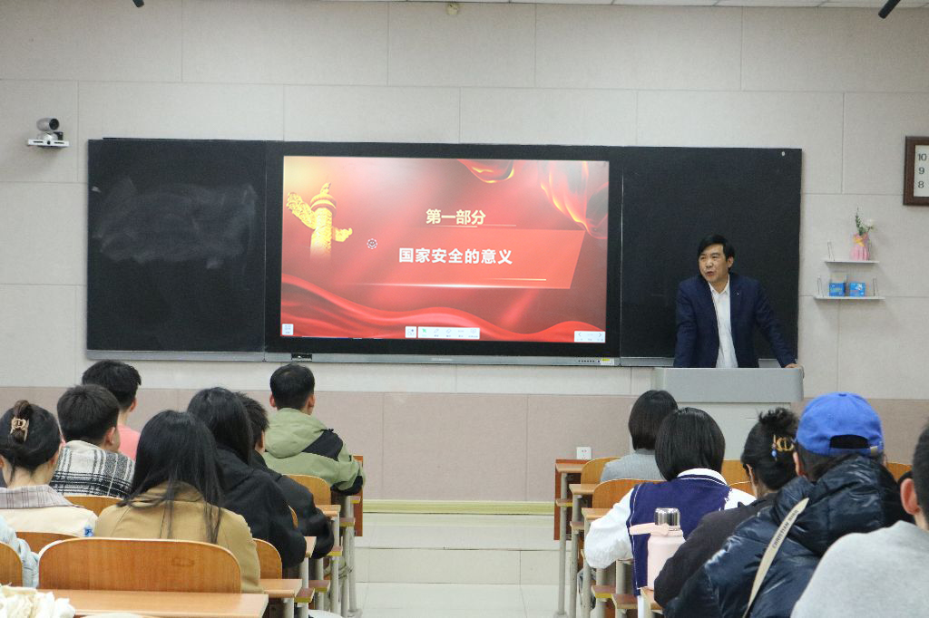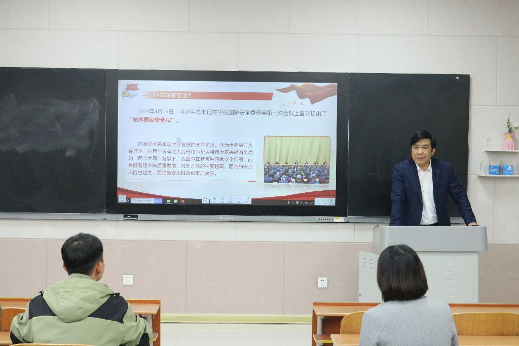 在第十个全民国家安全教育日来临之际,为提升学生国家安全意识,筑牢校园安全防线,4月15日下午,党委书记苏占兵于S206教室以“树牢总体国家安全观,保障国家发展安全”为题为全体研究生上了一堂形势政策课。